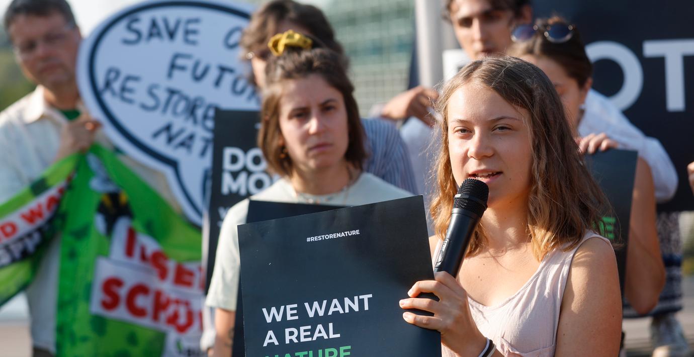 – Vi behöver naturen för att överleva. Om vi fortsätter som vi gör nu är vi på väg mot ett stup, säger Greta Thunberg på plats i Strasbourg.