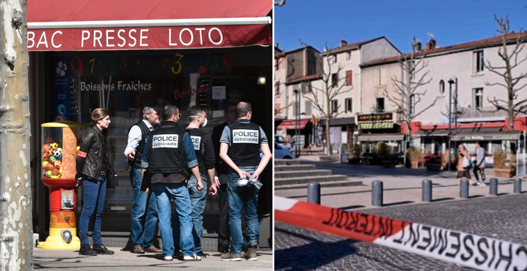 Två personer dog och fem skadades i attacken, som utreds som terrorbrott. Den huvudmisstänkte låg på knä och bad på arabiska när han greps av polisen och man har hittat handskrivna lappar med religiösa budskap, enligt franska antiterroråklagaren.