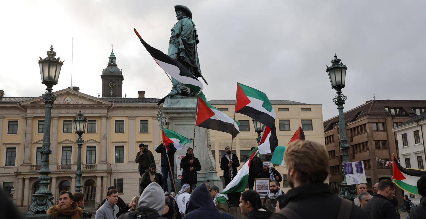 Klippet är filmat under en propalestinsk demonstration i Göteborg i helgen och i det ses mannen bland annat slå en telefon ur handen på en kvinna och sedan säga ”fuck you, go home”, rapporterar SVT Nyheter Väst.