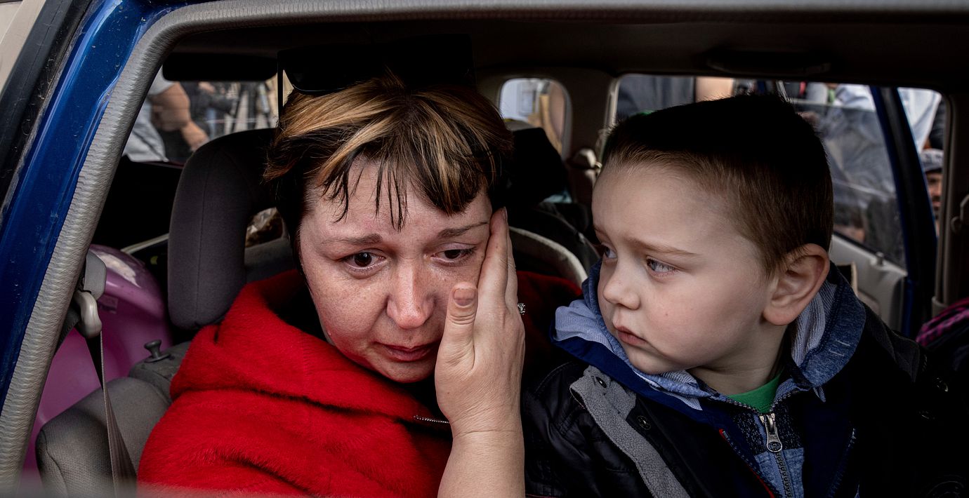 Konvoj med evakuerade civila från Mariupol i rörelse