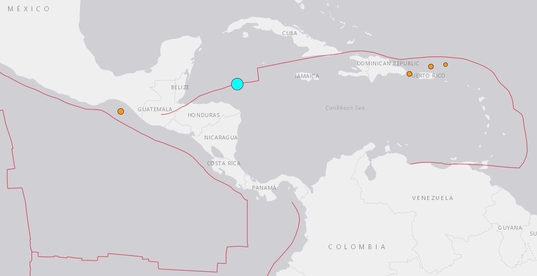 Ett kraftigt jordskalv med magnituden 7,6 har inträffat i Karibiska havet, drygt 20 mil nordost om orten Barra Patuca i Honduras.