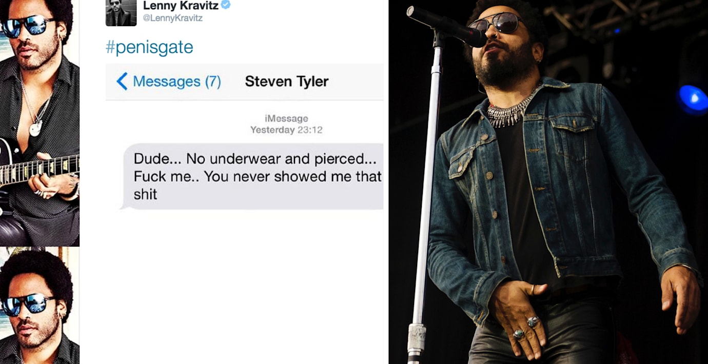 Lenny Kravitz spruckna byxor på konserten i Stockholm i måndags skapade rubriker världen över och har fått beteckningen ”penisgate”. Artisten kommenterar nu själv händelsen med en skärmdump av ett sms från vännen Steven Tyler i Aerosmith: