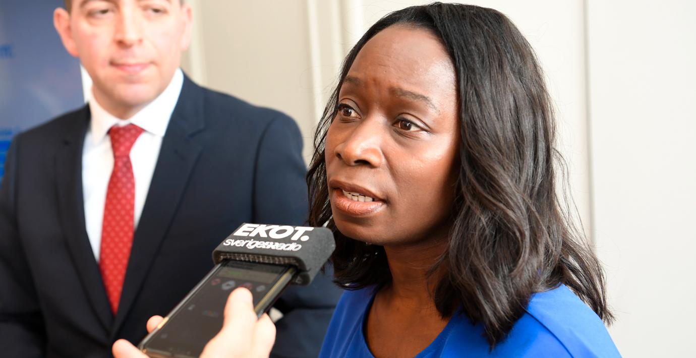 – Sedan övergår ansvaret till företagen, men staten kommer fortsatt att ta ansvar för extraordinära kostnader kopplade till sjuklönen, säger Liberalernas partiledare Nyamko Sabuni.