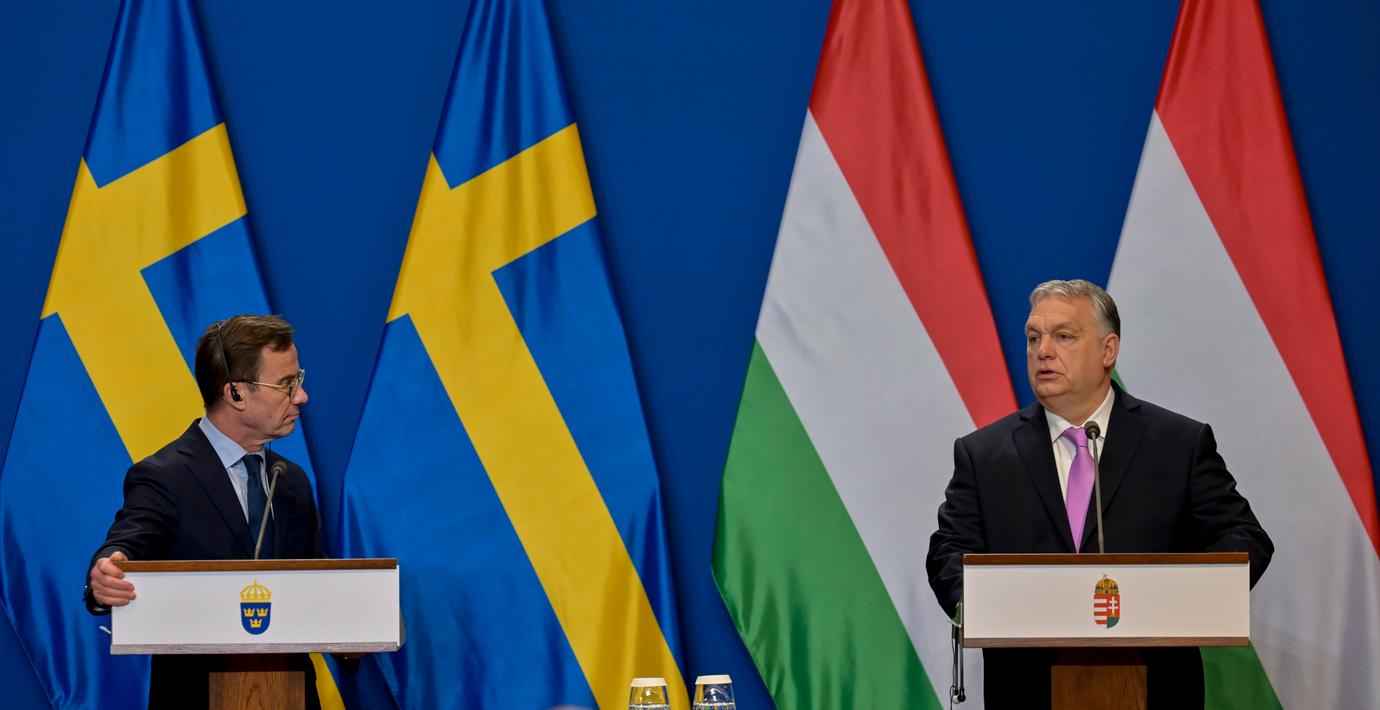 ”Skamlösa lögner. Inte förvånande att det kommer från mannen som håller på att nedmontera rättsstaten i sitt eget land. Orbán är desperat inför det kommande ungerska valet”, skriver Kristersson på X.