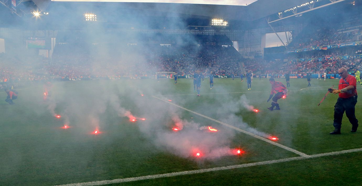 2–2 | EM-matchen mellan Tjeckien och Kroatien avbröts tillfälligt efter att bengaler kastats in på planen från den kroatiska läktarsektionen. När funktionärer kom in för att ta bort bengalerna exploderade ett knallskott i närheten av en funktionär som fick ledas av planen. Matchen kom igång igen efter ett tag och kunde avslutas. Slutresultatet blev 2–2.
