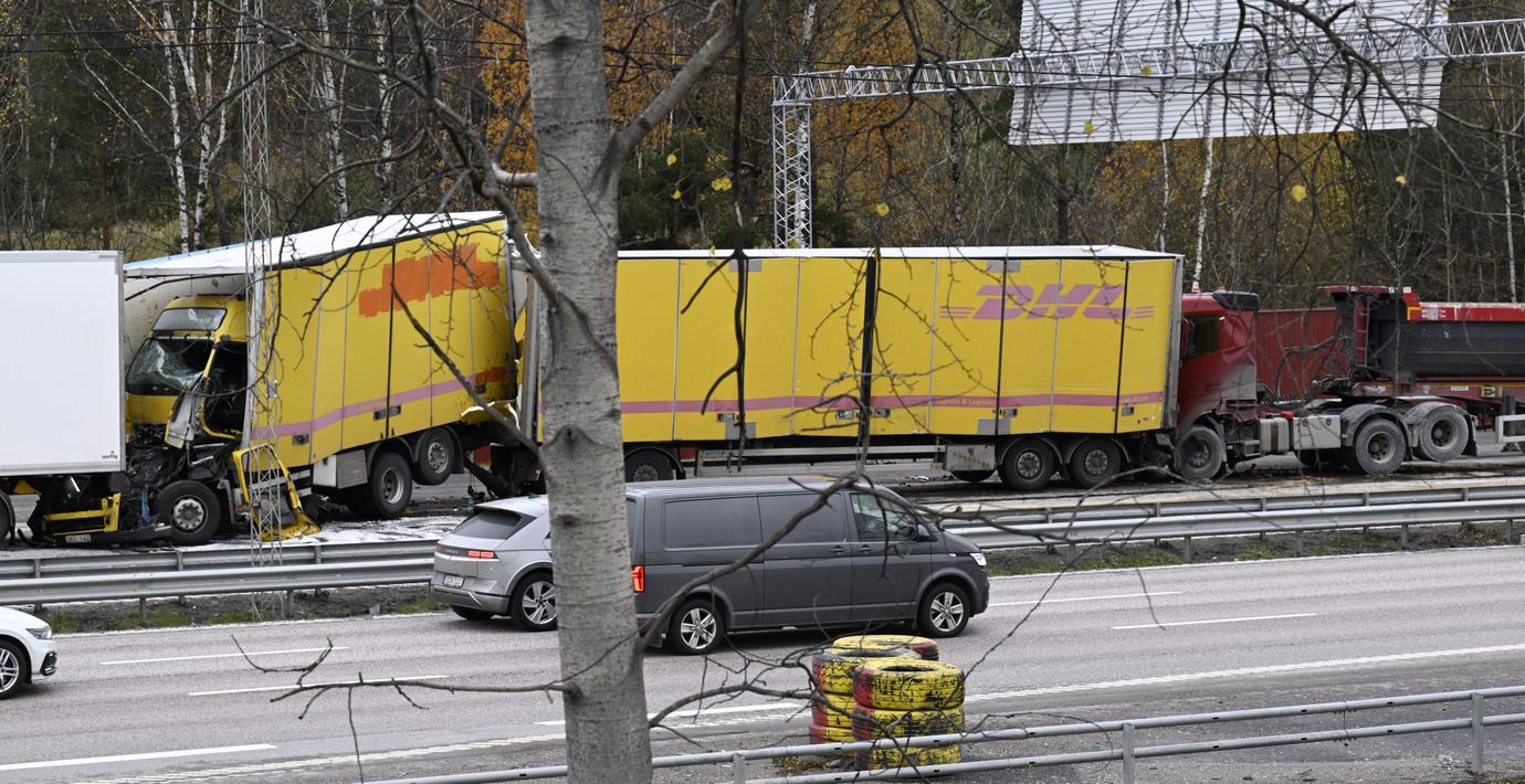 Krock på E4 i norra Stockholm – långa köer