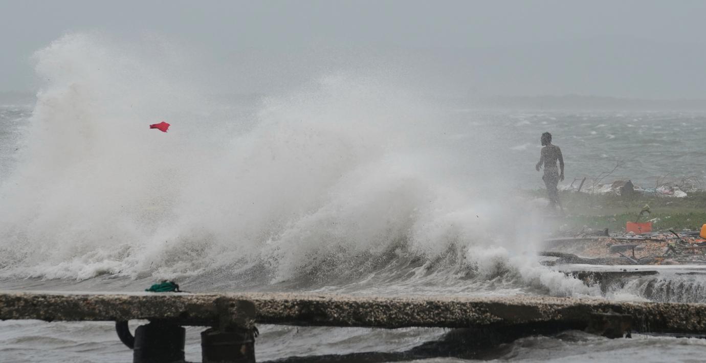 – Hela kustlinjen är borta. Vågorna är uppemot fem meter höga och det är som att jag kan se vinden. Det är helt otroligt, säger han till kanalen.