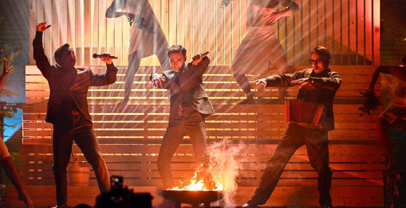 Måns Zelmerlöv bidrag är starkast, men i år kan det vara ”skitsamma” och hans ”Revolution” kan förlora mot en ”finlandssvensk lokalrevy om att bada bastu”, spår Aftonbladets skribent.