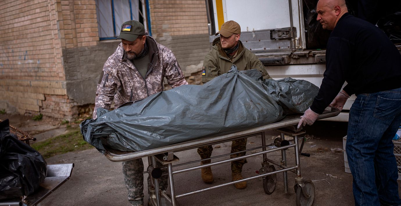 Bårhusen var enligt The Guardian på väg att nå ”bristningsgränsen” redan innan de ryska trupperna drog sig tillbaka från området tidigare i april, och nu staplas kroppar i kylbilar utanför bårhusen.