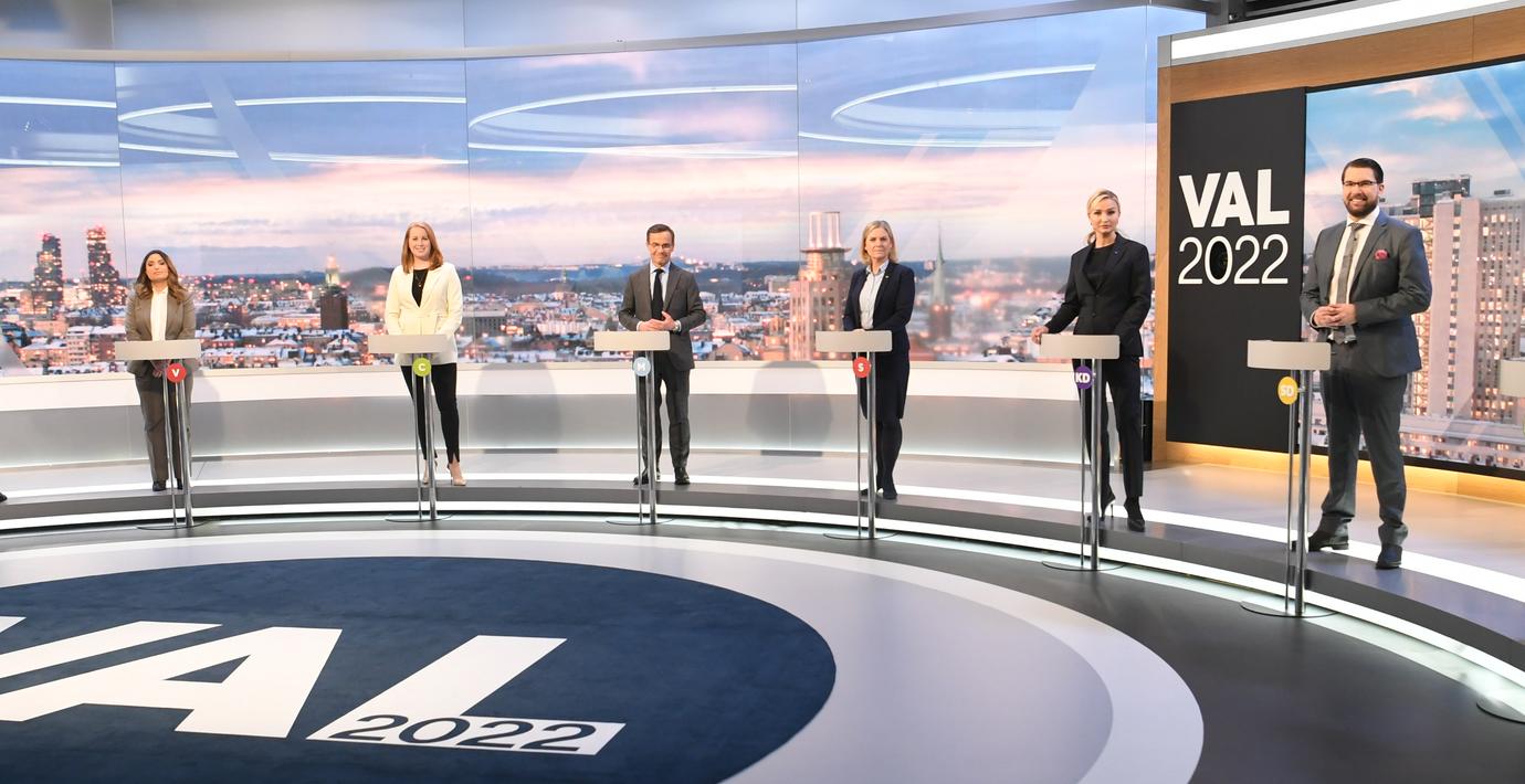 Sex av kvällens deltagare. (Fredrik Sandberg /TT)