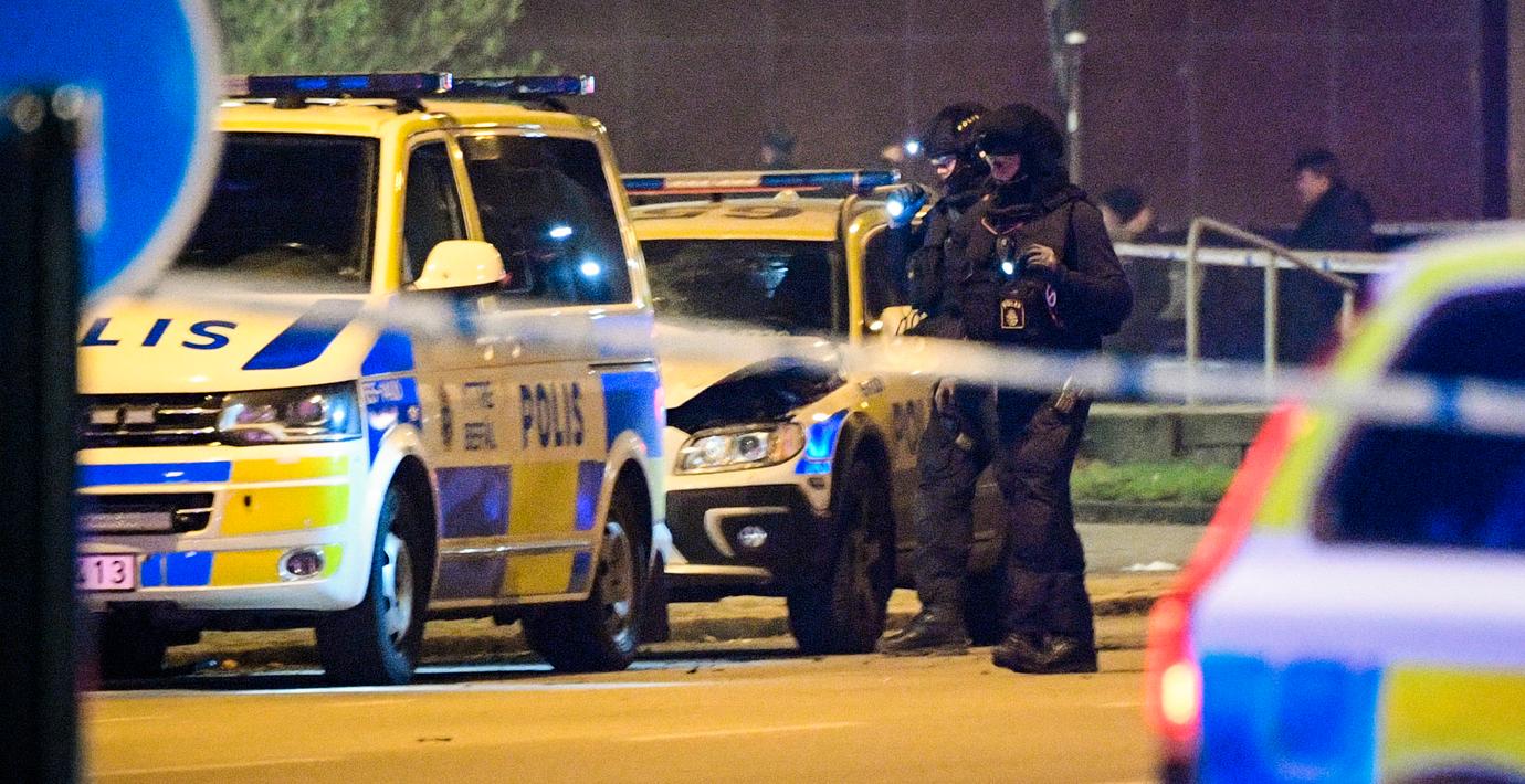 Kvinna i vitt söks efter att polisbil sprängts i Malmö