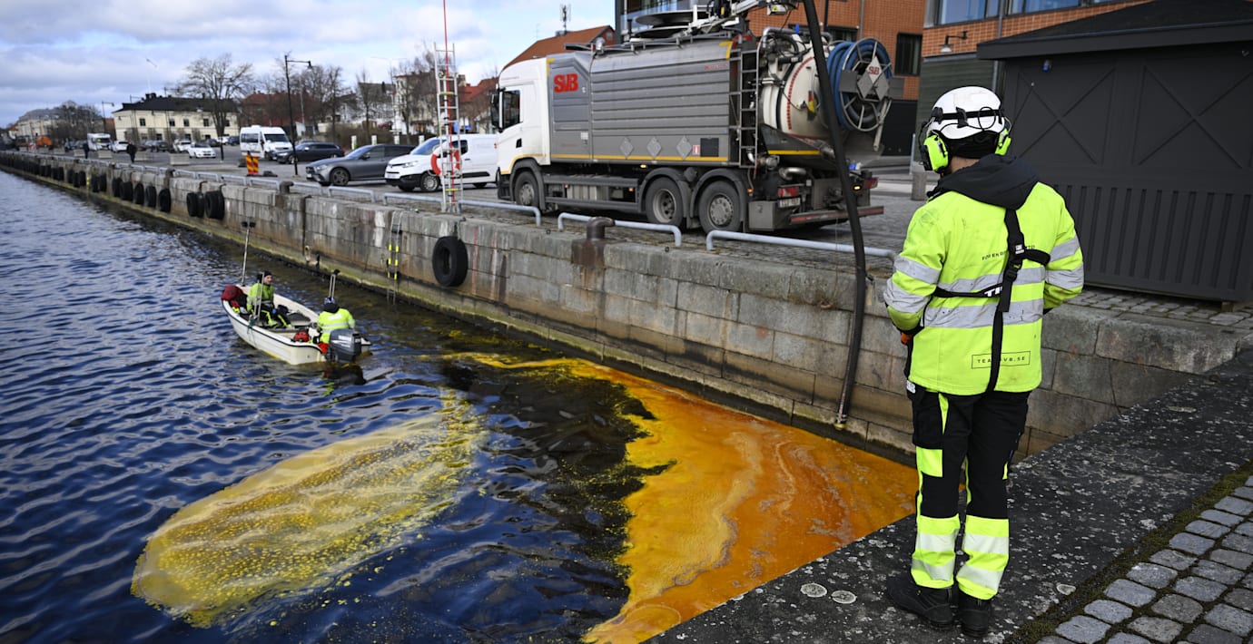 Läcka färgar vattnet brandgult i Karlshamn