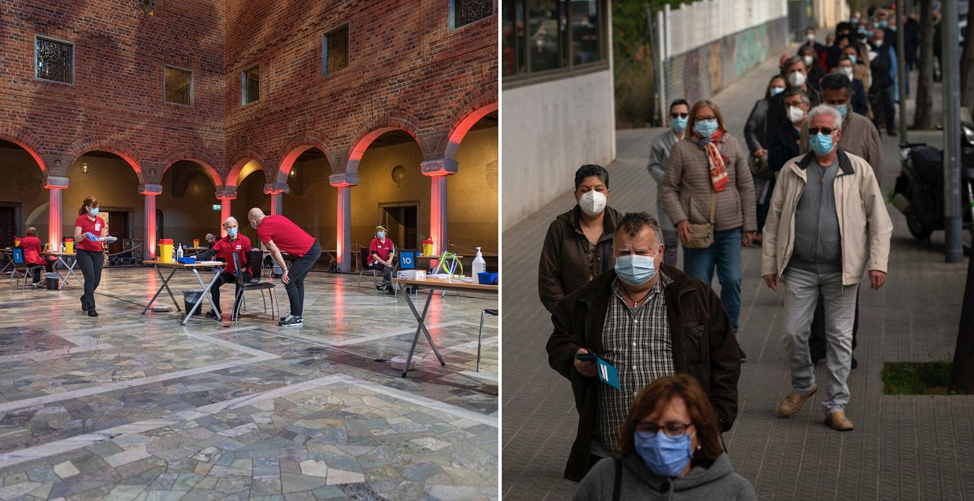 Hårt drabbade länder som Spanien och Italien hade en överdödlighet på nivåer runt 50 procent i mars 2020.