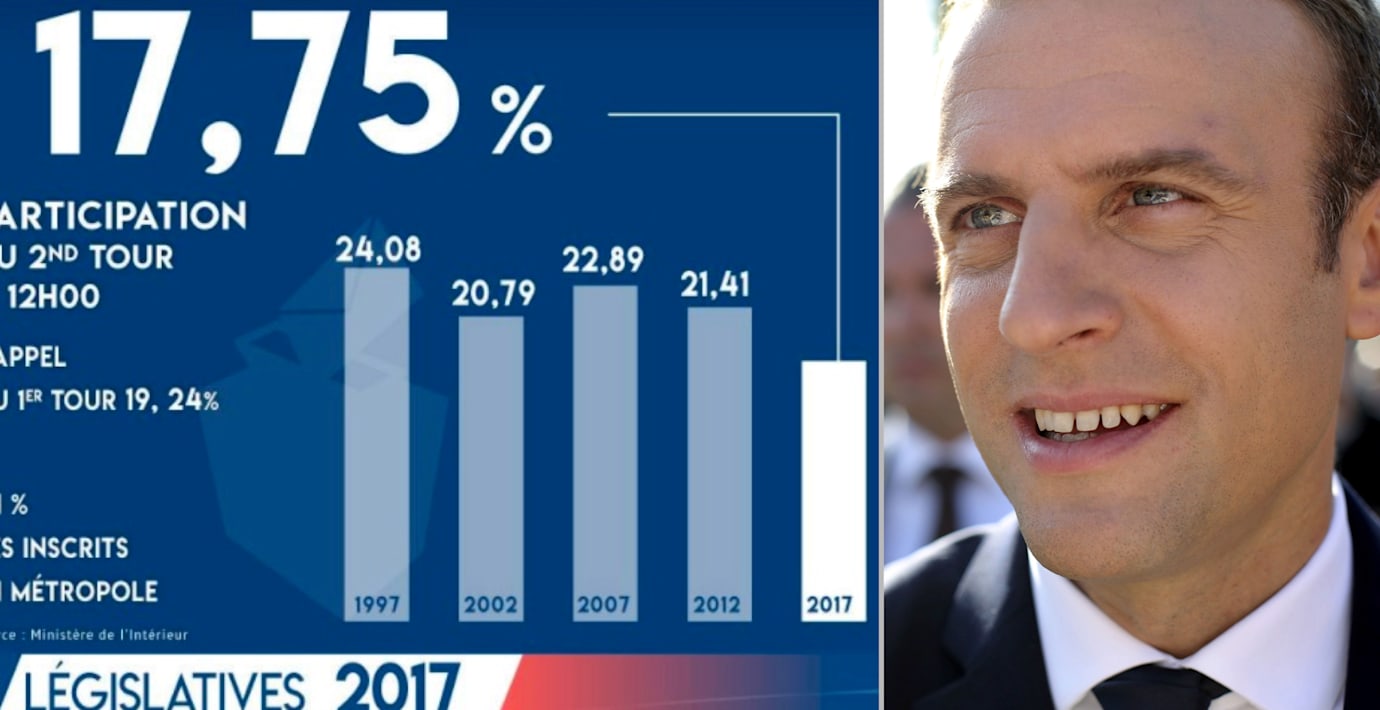 Valdeltagandet väntas dock bli lågt. Vid lunchtid låg det på 17,75 procent, jämfört med 21,41 procent vid samma tidpunkt vid valet 2012, skriver AFP. Det låga deltagandet kan vara ett tecken på väljartrötthet efter en sju månader lång valkampanj, skriver The Guardian. Det kan också signallera att väljarna är desillusionerade och arga på politiker, vilket skulle kunna skapa problem för Macron då han vill driva igenom sina reformer framöver.