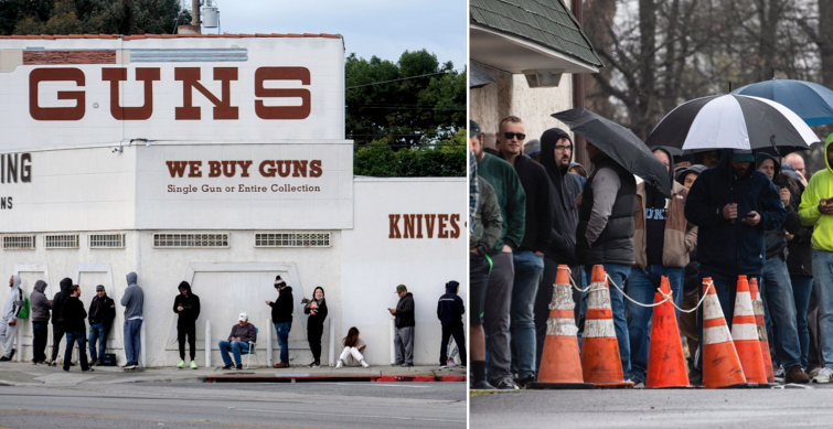 Långa köer när amerikaner bunkrar vapen i viruskrisen