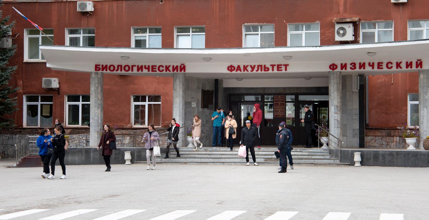 Pechishchev gömdes sig sedan ihop med elever i en aula i över en timme innan faran var över.