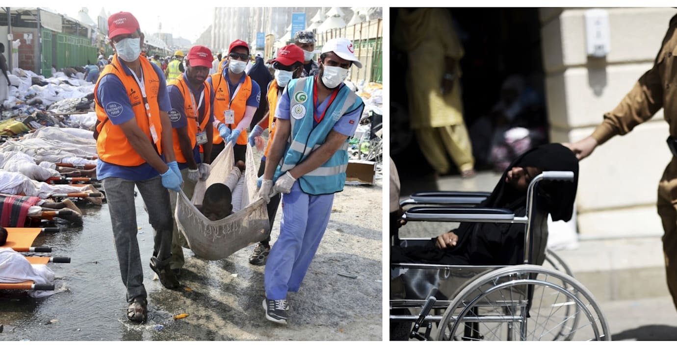 Pakistanske läraren Alamzeb Khan, 48, och hans fru vara nära att dödas i pigrimstragedin i utanför Mecka. För Reuters berättar han hur han drog sin febersjuka fru ur rullstolen när paniken bröt ut.