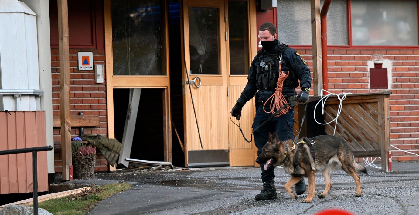 – När vi kommer fram kan vi se att det varit en detonation i en port till ett niovåningshus, säger Daniel Lundin, vakthavande befäl vid räddningstjänsten, till TV4 Nyheterna.