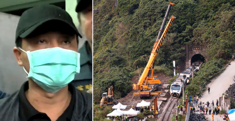 Bilderna togs av passagerare på tåget och visar hur Lee Yi-Hsiang står nära rälsen och ser på när människor försöker ta sig till säkerhet. I det läget tros han ha vetat om att hans lastbil orsakade kraschen, enligt tidningen.