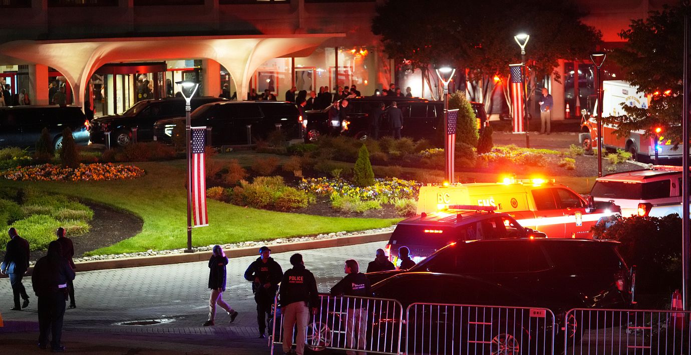 Men runt själva balsalen var säkerhetspådraget betydligt större. Allen stoppades när han försökte storma in, ännu långt ifrån Trump och hans ministrar.