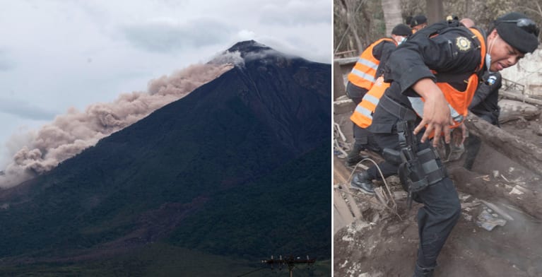 Stora flöden av lava, aska och giftiga gaser rasade ned mot flera dalar under Eldvulkanens krater i Guatemala på fredagen, rapporterar Reuters.