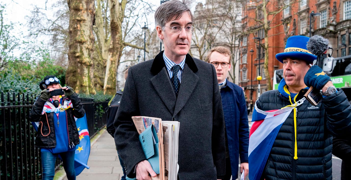 Jacob Rees-Mogg leder de konservativa brexitörernas research-grupp (ERG). Han säger till Bloomberg att hans ställningstagande kommer att bero på vad gruppens juridiska experter kommer fram till, samt Geoffrey Cox rekommendation.