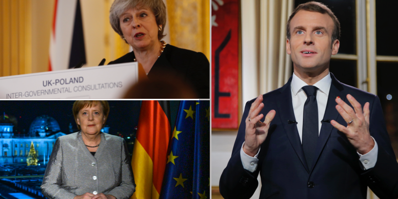 Flera europeiska ledare har hållit nyårstal, däribland Storbritanniens premiärminister Theresa May, Frankrikes president Emmanuel Macron och Tysklands förbundskansler Angela Merkel.
