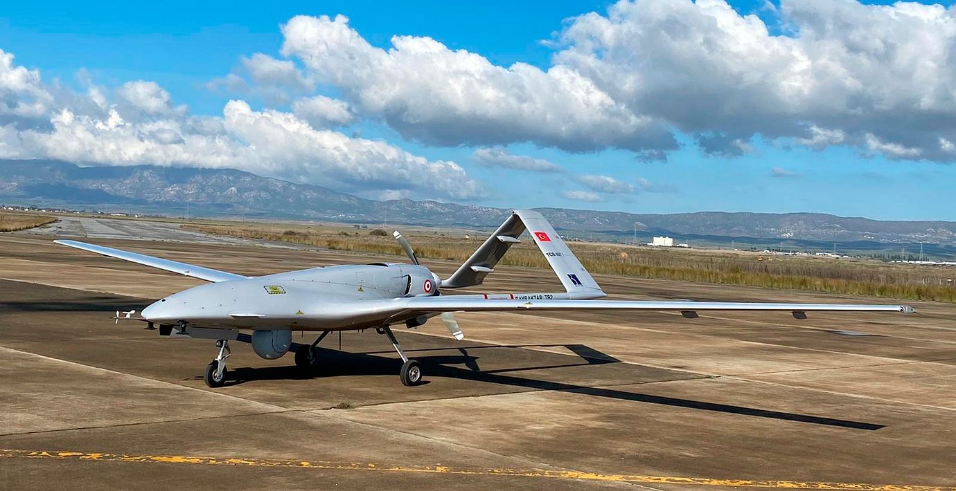Bayraktar TB2 är en drönare (UAV) från det turkiska företaget Baykar som är avsedd för spaning och kan beväpnas med en kanon eller två pansarvärnsrobotar. Drönaren kontrolleras från marken eller programmeras i förväg. Den har lång räckvidd och flög första gången i augusti 2014.