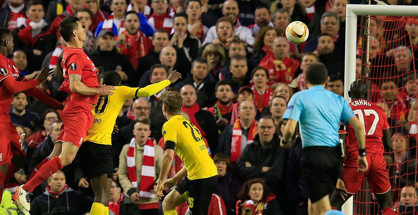 Liverpool vände i kväll ett underläge på 1–3 till 4–3 mot Borussia Dortmund på en halvlek och är därmed vidare i Europa League med sammanlagt 5–4. Dejan Lovren nickade in segermålet på tilläggstid.