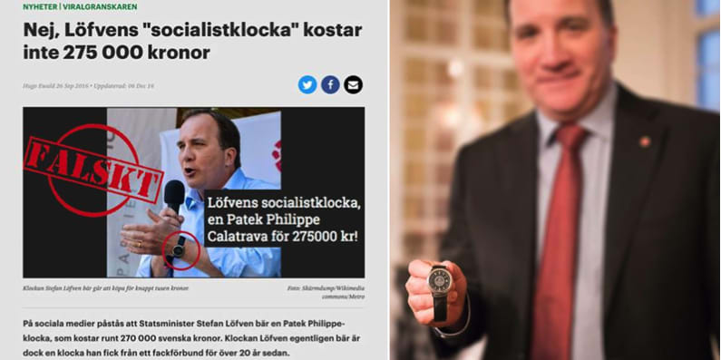 Stefan Löfvens armbandsur blev föremål för ryktesspridning på nätet då någon fotograferat statsministern med klockan, som påstods vara värd 275 000 kronor. I själva verket är klockan en gåva från maskinarbetare i USA och värderas till runt 700 kronor. Nu skänker Löfven klockan till Musikhjälpen, där den kommer att auktioneras ut till förmån för barn i krigsdrabbade områden och deras rätt att gå i skolan.