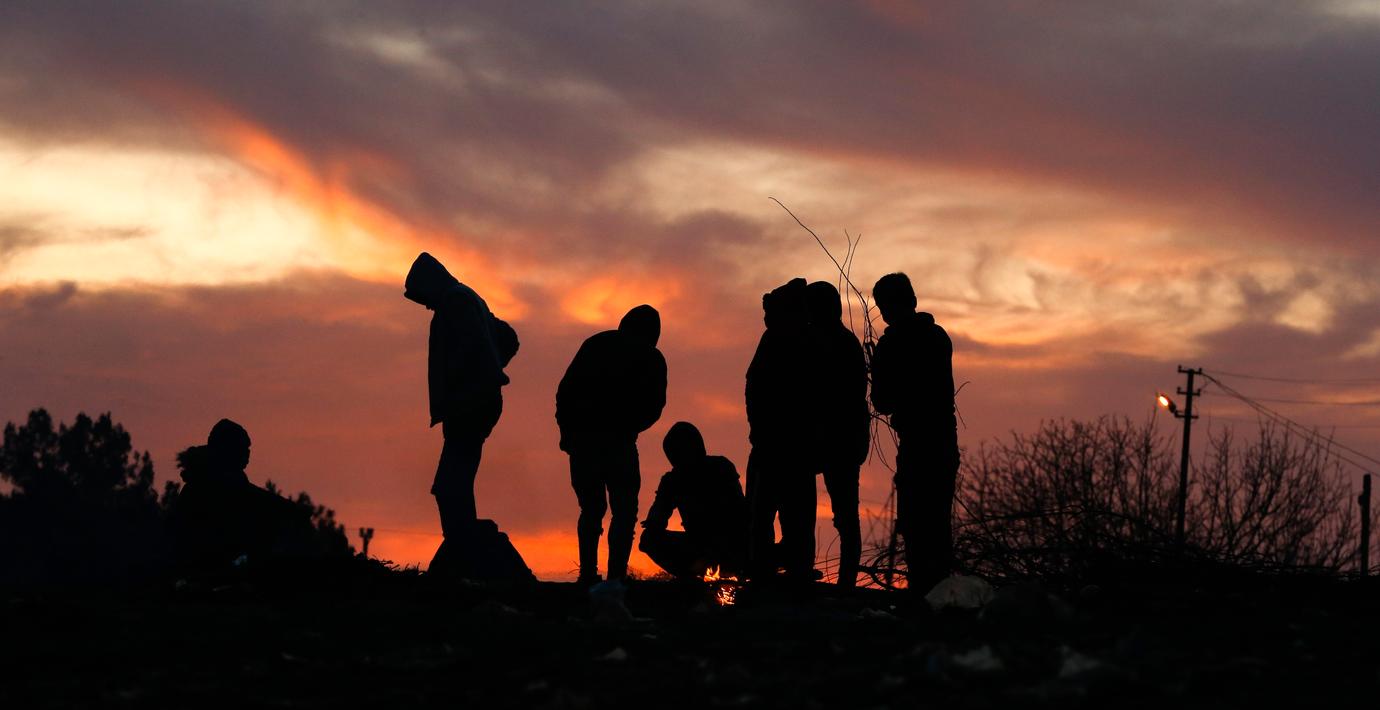 Flyktingar vid gränsen mellan Turkiet och Grekland i går. (Emrah Gurel / TT NYHETSBYRÅN)