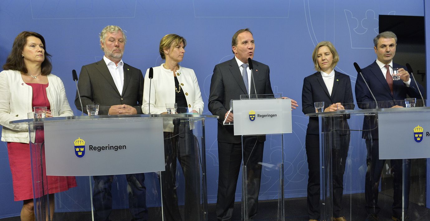 Isabella Lövin (MP) fortsätter som biståndsminister med större ansvar för klimatfrågor. Hon blir även vice statsminister. Ann Linde (S) presenteras som ny EU- och handelsminister med placering i utrikesdepartementet.