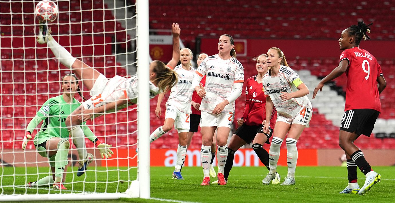 Den svenska fotbollsspelaren Hanna Lundkvist fick göra sitt första mål i Champions League när hennes Manchester United mötte tyska storklubben Bayern München i kvartsfinal. 23-åringen nickade in en kvittering med en kvart kvar att spela.