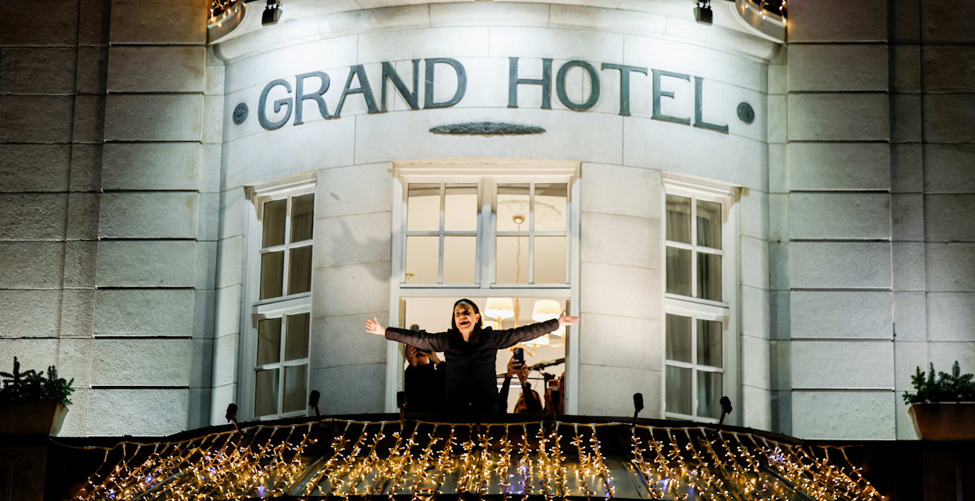 Runt klockan 02.30 gjorde fredspristagaren María Corina Machado sitt första offentliga framträdande sedan i januari. Då klev hon ut på balkongen på Grand Hotel i Oslo och vinkade till en stor skara som samlats på torget nedanför.