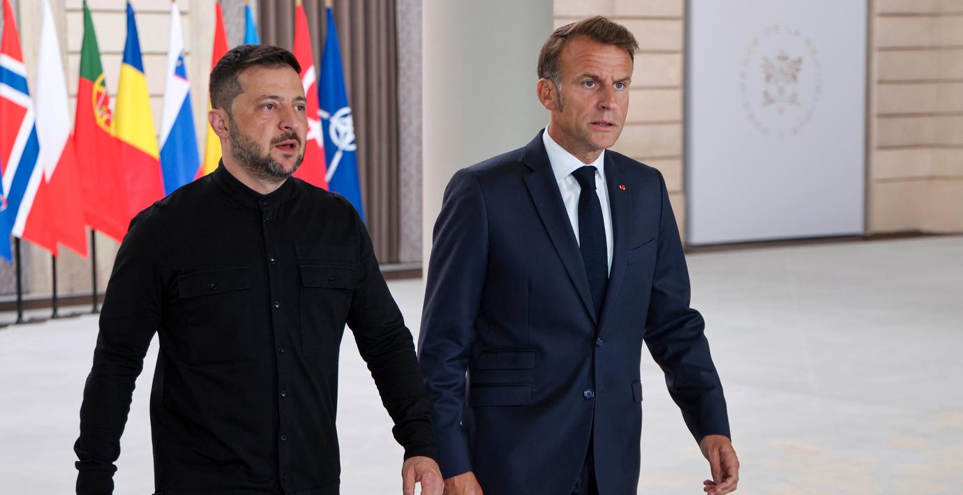 Volodymyr Zelenskyj och Emmanuel Macron. (Ludovic Marin / AP)