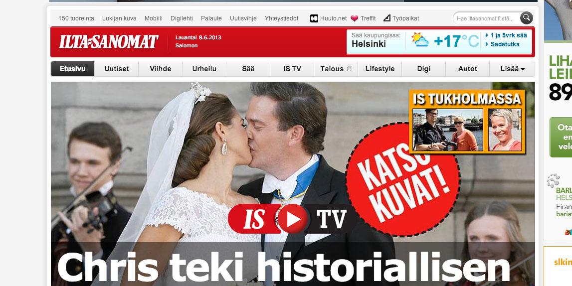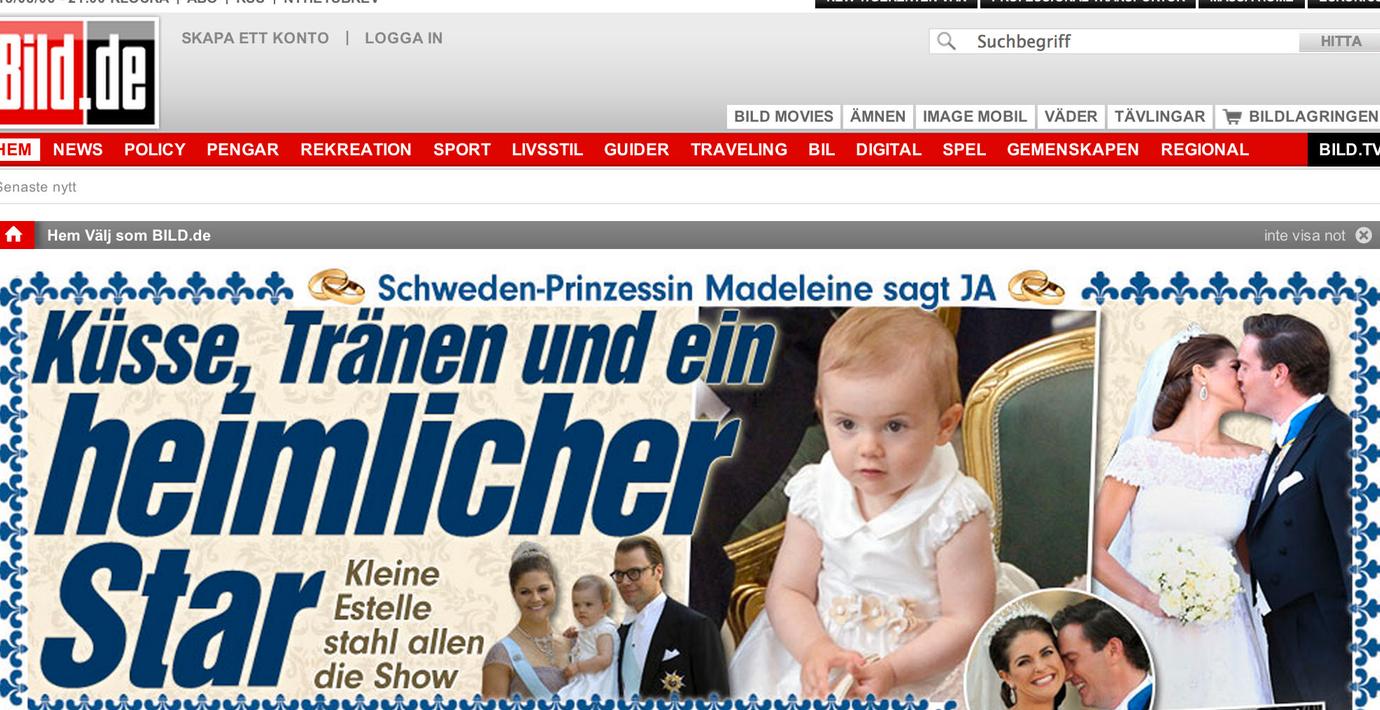 Engelska Daily Mail, tyska Bild Zeitung och finska Ilta Sanomat är några av de utländska tidningarna som har toppat, och toppar, sina hemsidor med det svenska prinsessbröllopet. Daily Mail beskriver vigseln som ett sagobröllop.