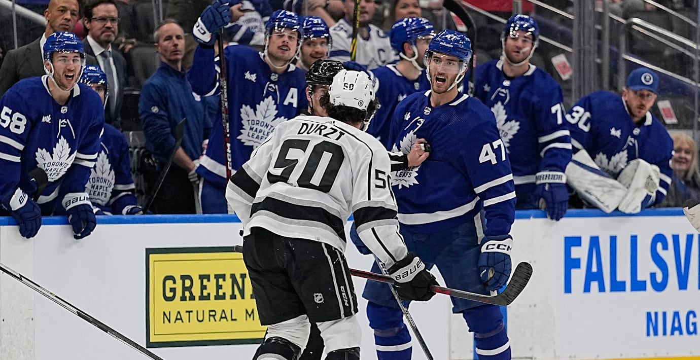 Svenskarna var i hetluften när Toronto besegrade Los Angeles med 5–0 i nattens NHL-hockey. Båda Pierre Engvall och William Nylander gjorde mål – och Engvall fick sedan matchstraff efter ett nackslag med klubban på Sean Durzi.