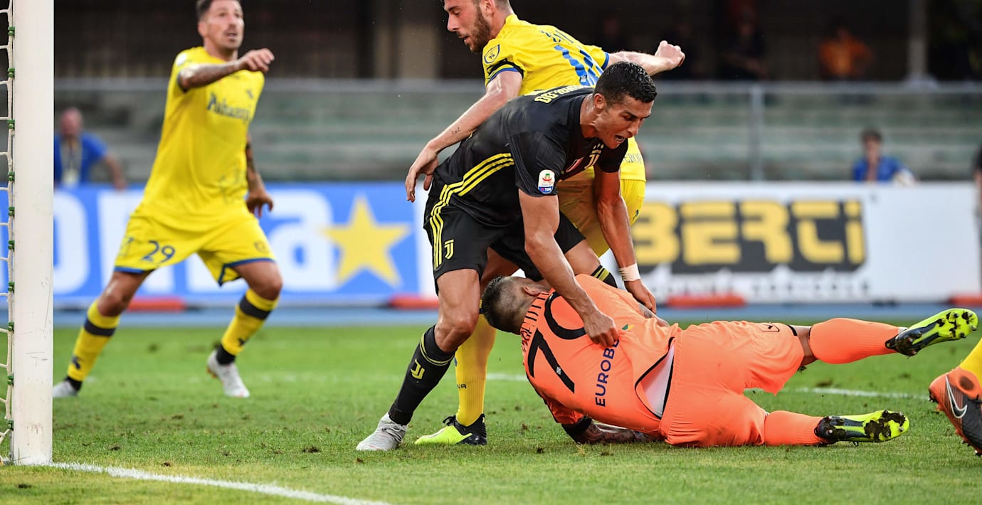 Chievomålvakten Stefano Sorrentino gjorde en stark match i mötet med Juventus, trots att han fick släppa två bollar förbi sig. Men med bara minuter kvar av matchen skadade han sig i en situation där även Juventus Cristiano Ronaldo och Chievobacken Mattia Bani var inblandade.