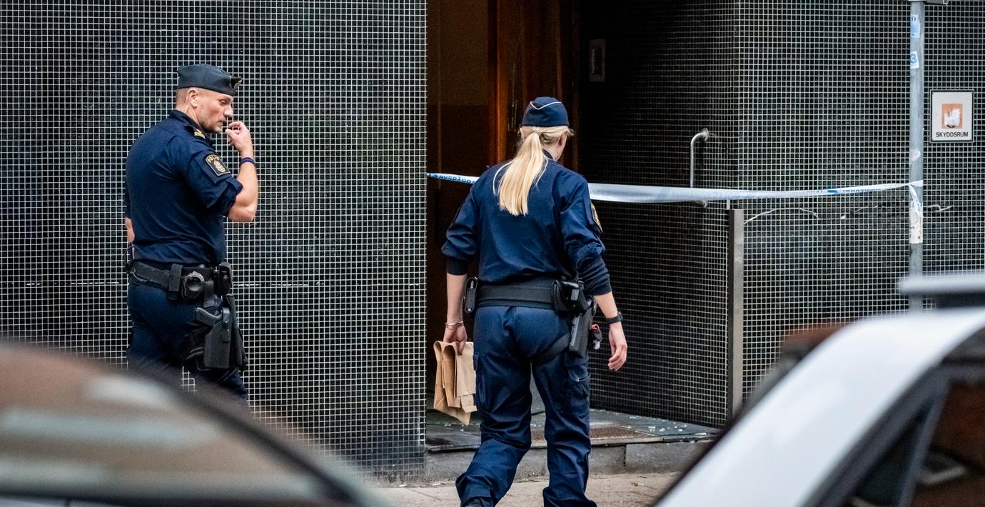Tidningens reportrar har sett två personer föras ut ur byggnaden av polis. Enligt SVT Nyheter Skåne har fyra personer gripits misstänkta för mord, misshandel och grov utpressning.