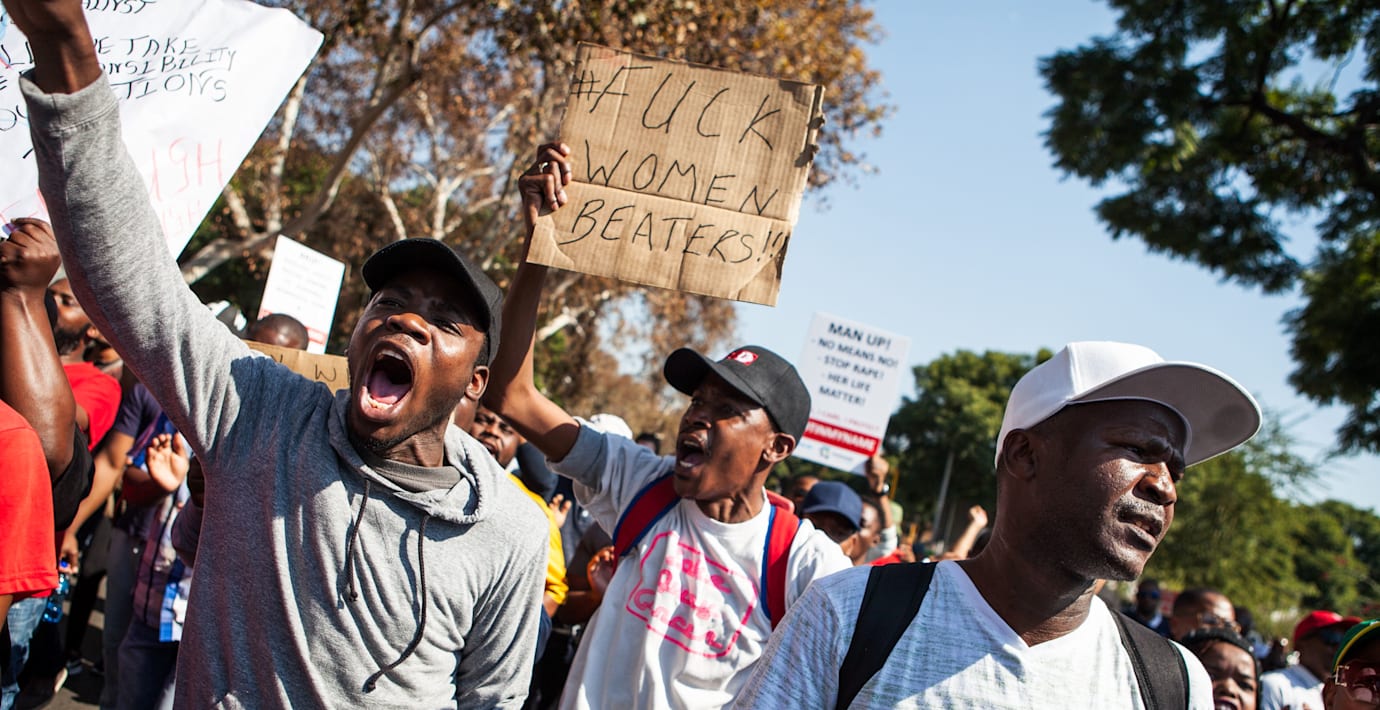 Män i Sydafrika protesterar mot våld mot kvinnor