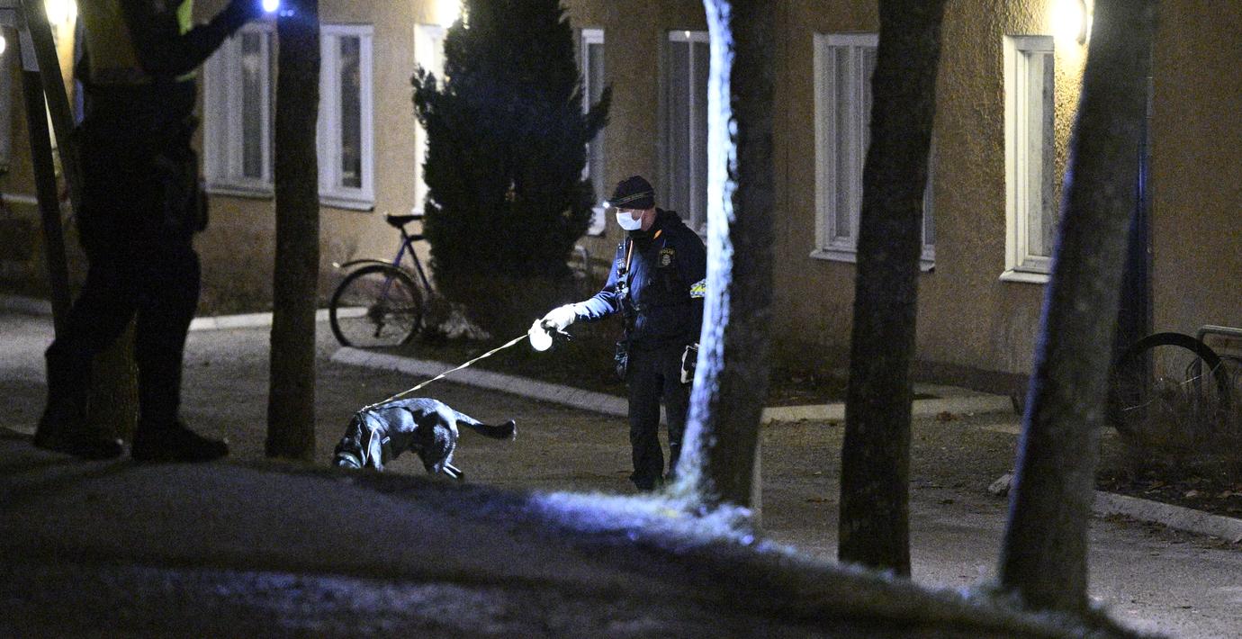 Man skjuten utomhus i Vårby gård – stor polisinsats