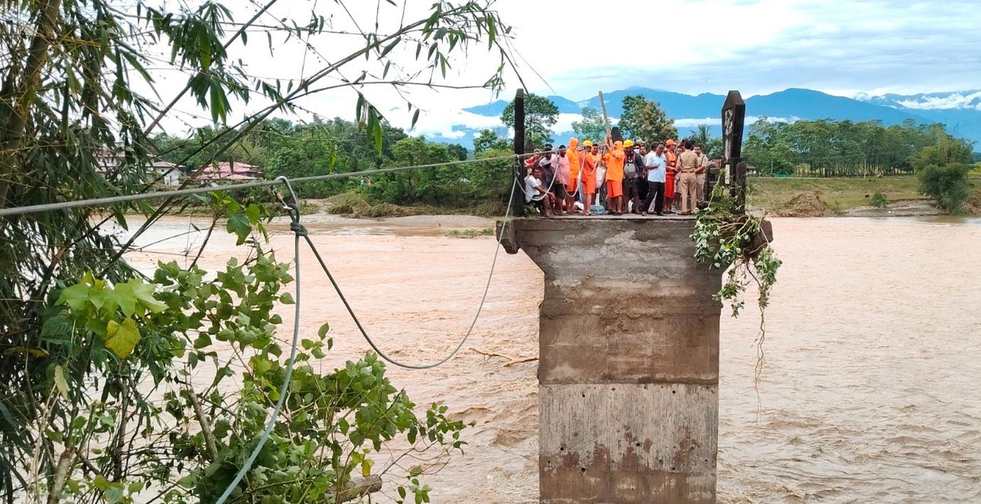 Räddningsinsatserna försvåras av att skyfallen sköljt bort många vägar till de drabbade byarna.