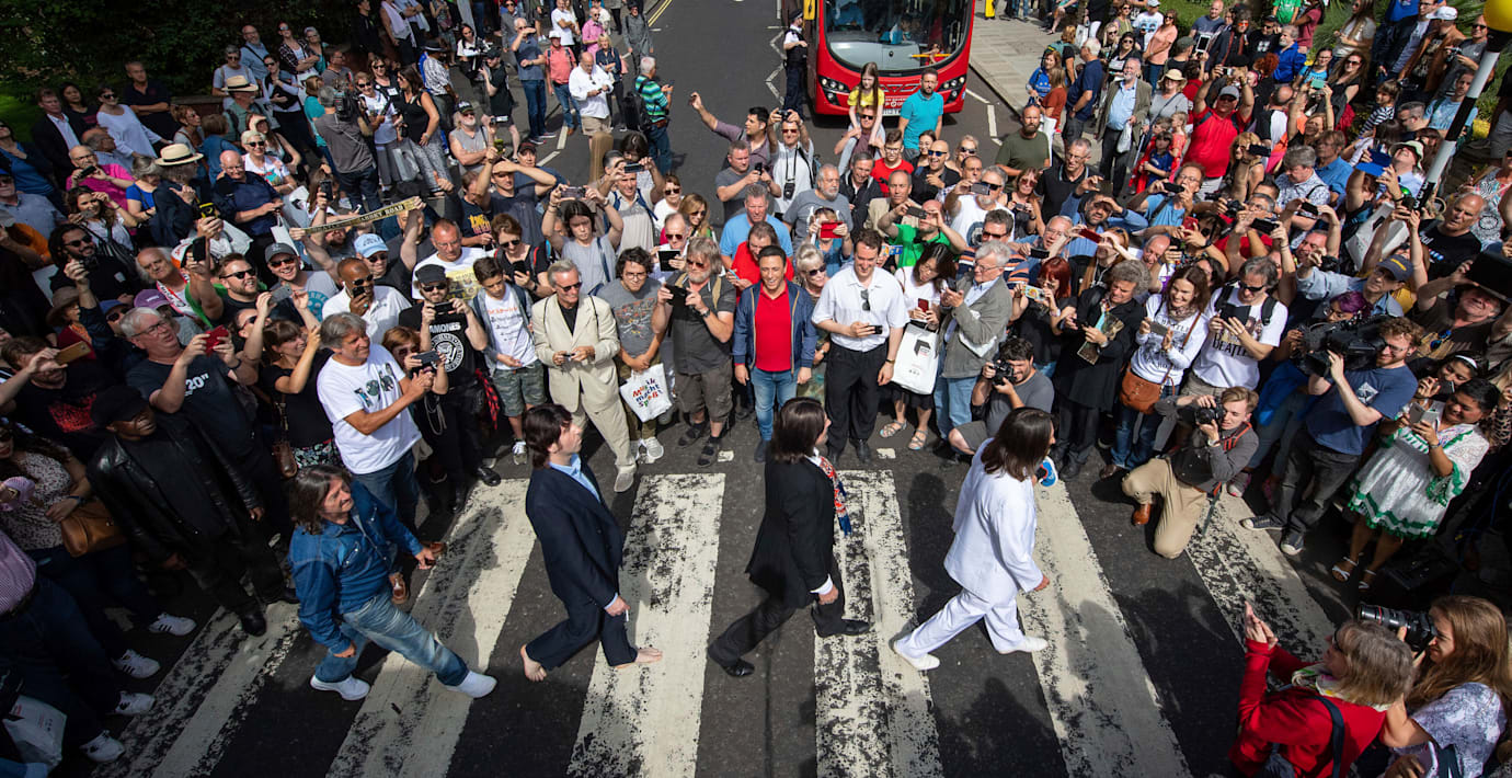 Designern och reklamaren John Kosh bestämde att bandnamnet inte skulle vara med på det klassiska omslaget till Beatles-albumet Abbey Road. I en intervju med Rolling Stones säger han att det var ett snabbt beslut.