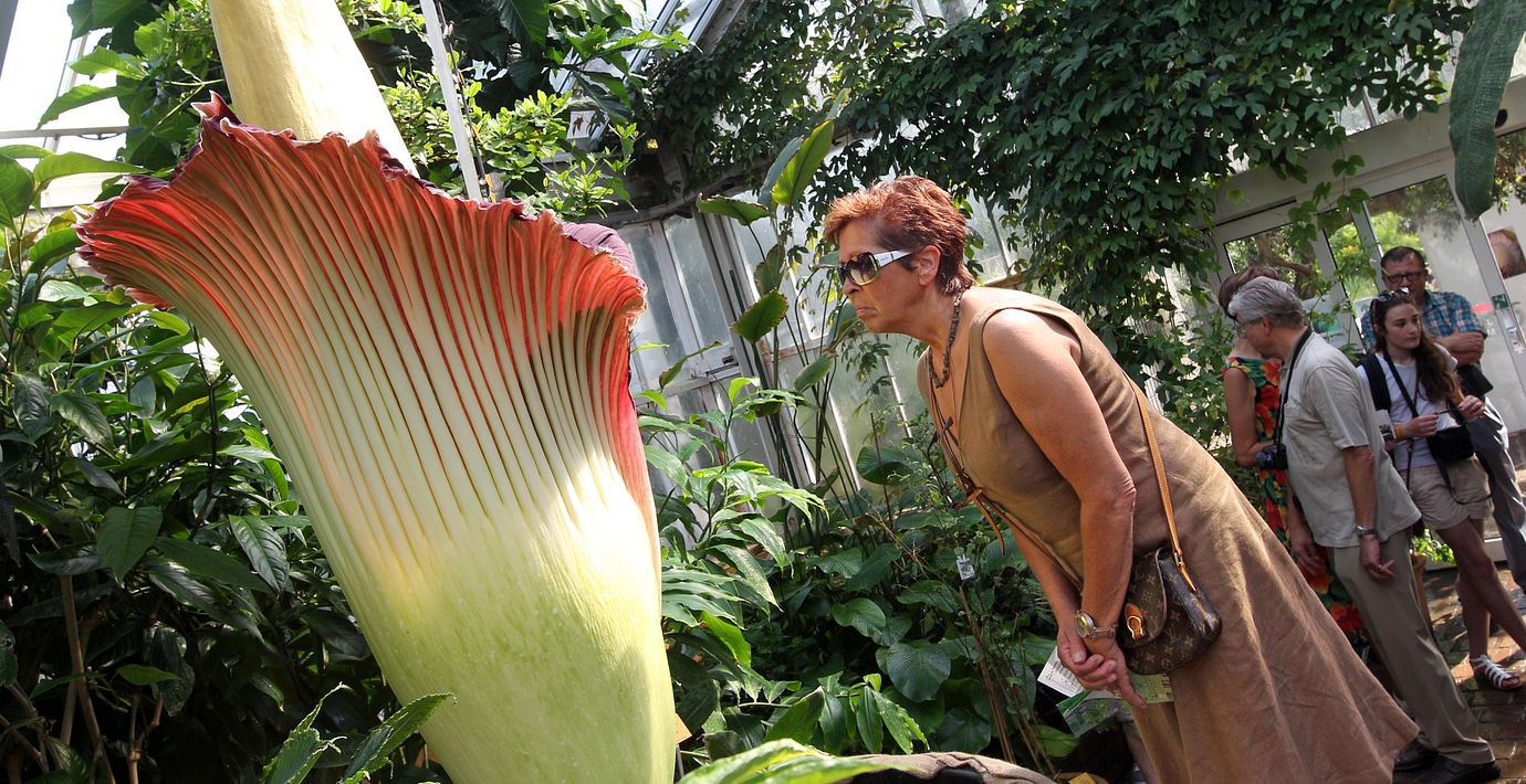 I Sydney köar människor i timmar för att få en glimt och en sniff av den högst ovanliga jätteknölkallan, skriver TT. Enligt BBC kallas blomman för ”likblomma” tack vare sin lukt som påminner om en blandning av blöt strumpa, rutten pungråtta och varm kattmat.