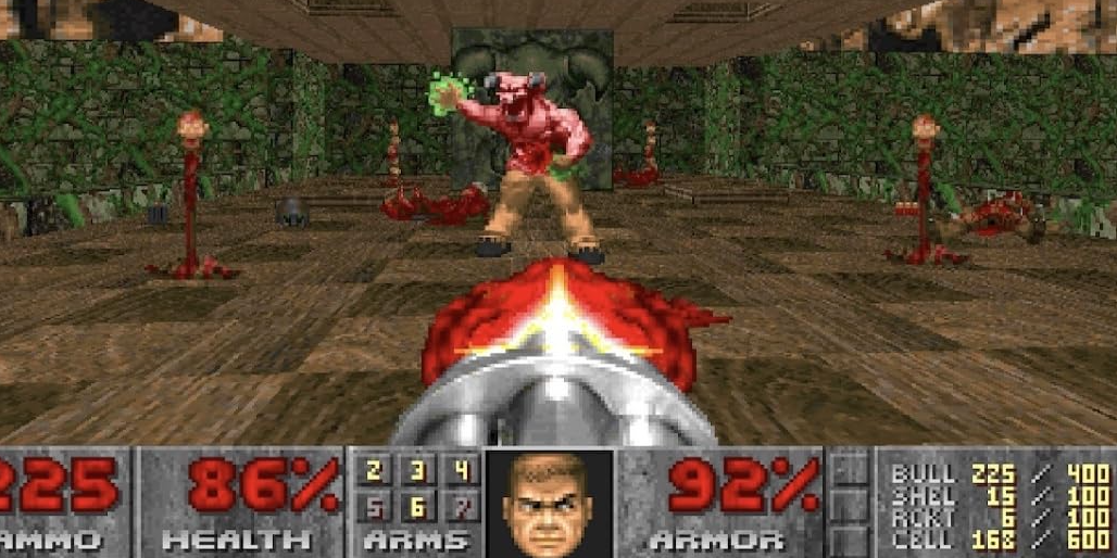 Doom is a 1993 first-person shooter game developed and published by id Software for MS-DOS. It is the first installment in the Doom franchise. The player assumes the role of a space marine, later unofficially referred to as Doomguy, fighting through hordes of undead humans and invading demons. The game begins on the moons of Mars and finishes in hell, with the player traversing each level to find its exit or defeat its final boss. It is an early example of 3D graphics in video games, and has enemies and objects as 2D images, a technique sometimes referred to as 2.5D graphics.