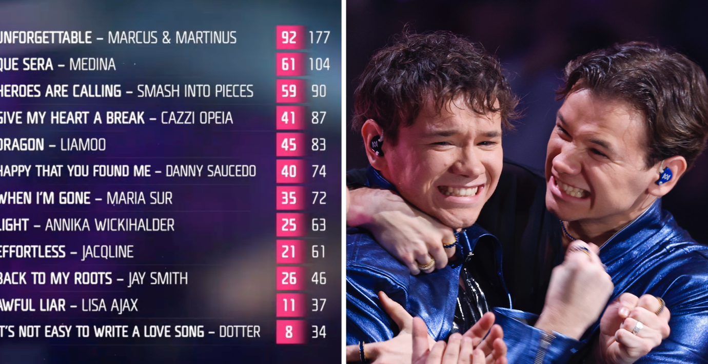 Marcus & Martinus tar en överlägsen seger i Melodifestivalen 2024 och får representera Sverige i Eurovision Song Contest i Malmö den 11 maj. Den norska favorittippade duon gick hem bäst hos både tittarna och juryn med sitt bidrag ”Unforgettable”.