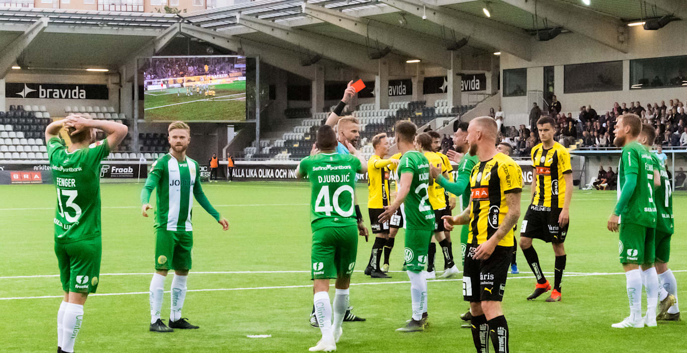 Bara två minuter senare valde Nyberg att visa ut Hammarbys Mads Fenger efter att denne gjort omkull Alexander Jeremejeff. Beslutet föregicks av ett långt samtal med den assisterande domaren.