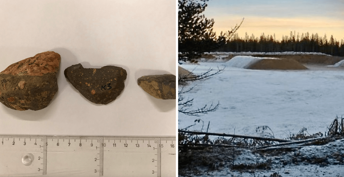 Fyra märkliga stenar som hittats i en grusgrop i den lilla byn Kitkiöjärvi i Pajala kommun har analyserats. De härstammar från ett hittills okänt meteoritnedslag för 659 miljoner år sedan, skriver Lunds universitet i ett pressmeddelande.