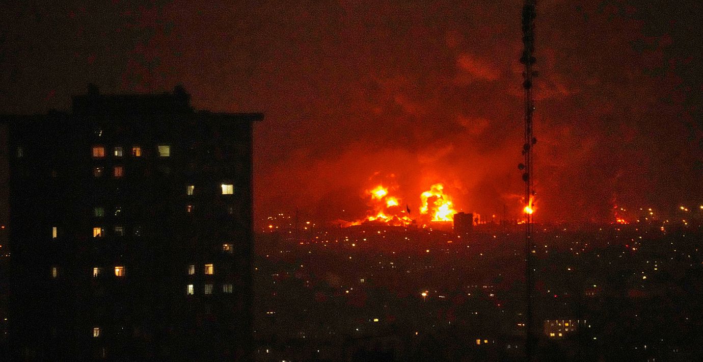 Filmer och bilder som sprids i sociala medier visar hur de stora bränderna rasar efter attackerna. Explosioner hördes i både huvudstaden och grannstaden Karaj under natten.