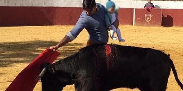 En av Spaniens mest prominenta matadorer, Francisco Rivera Ordóñez, har hamnat i hetluften sedan han publicerat en bild där han tar sig an en tjur med sin bebis i famnen. Det skriver CNN och The Guardian.